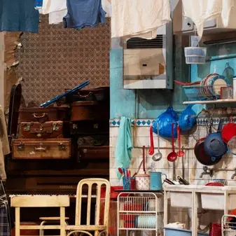 Hier, toute la journée, du matin au soir, les équipes techniques ont monté un décor, installé des accessoires et réglé des lumières... ↳ Rendez-vous dès ce soir, pour le spectacle La guerre n’a pas un visage de femme.
