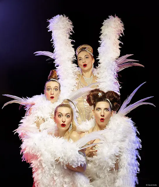 Broadway, la musique retentissante d'un big band. En contre‑jour, des danseuses paradisiaques arborant les tenues dignes des plus fameuses revues. Descente d'escalier, port de tête altier, chorégraphie affûtée. Attention, le grand show va démarrer ! Plumes, paillettes et rubans... Rien n'est trop beau pour les Sea Girls. Ce soir, les quatre belles sortent le grand jeu. Dans cette mise en scène signée Philippe Nicolle, de la compagnie 26 000 Couverts, on se délecte du caractère burlesque de chaque situation. On rit de les voir se chamailler telles des chiffonnières, se déchirer comme au cinéma et s'aimer sur des airs d'opéra. Bref, de la revue comme jamais vue pour un moment fantasque et décalé de pur divertissement.